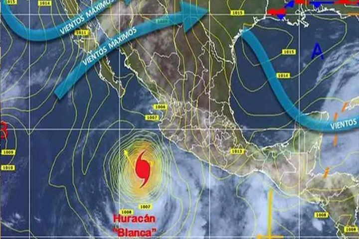 El huracán Blanca sigue debilitándose y bajó a categoría I, se desplaza hacia el nor-noroeste,...