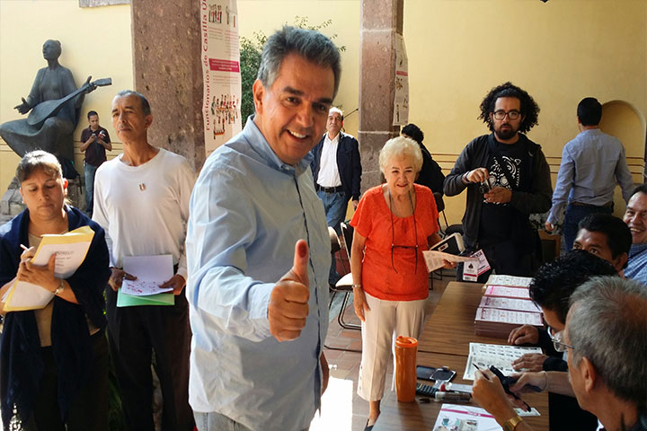 El candidato del PAN a la alcaldía de Morelia, Nacho Alvarado Laris acudió esta mañana a votar a ...