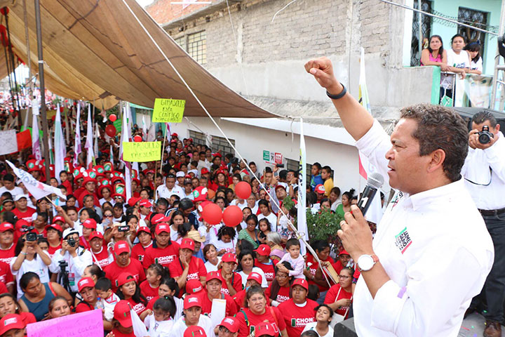 En un ambiente de fiesta, miles de habitantes de la zona Poniente del municipio, recibieron al candi...