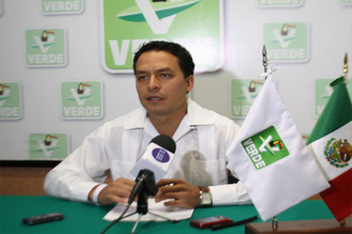 El dirigente estatal del Partido Verde Ecologista de México (PVEM), Jonathan Sanata González, in...