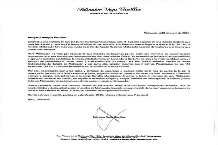 Carta pública de Salvador Vega a los michoacanos