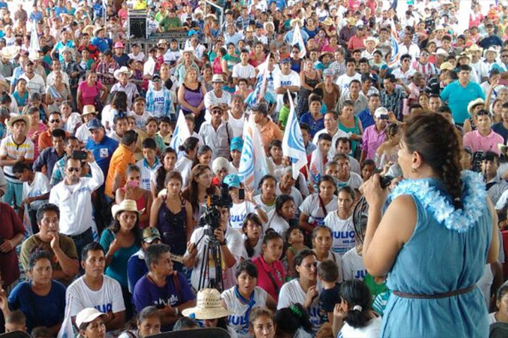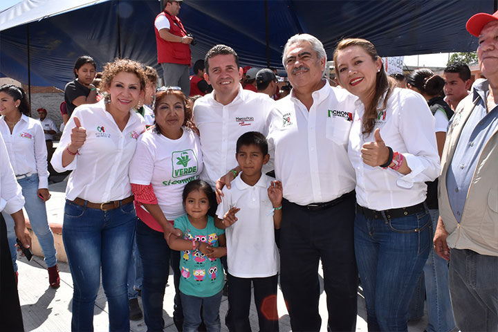 Silvano Aureoles Conejo, acompañado por el candidato a edil por este municipio y por las candidatas...