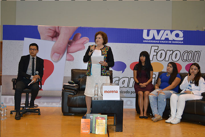 María de la Luz comparte su propuesta de gobierno a estudiantes de la UVAQ
