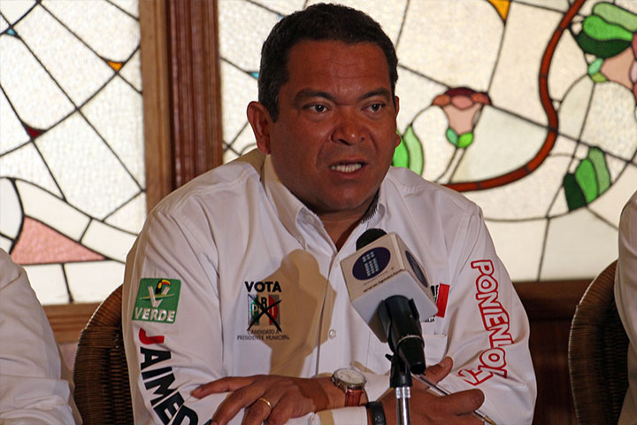 El candidato a gobernador, por la alianza Partido Revolucionario Institucional (PRI) y Partido Ver...