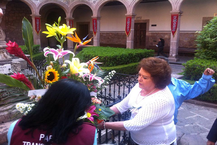 María de la Luz coloca ofrenda floral a la figura de Hidalgo