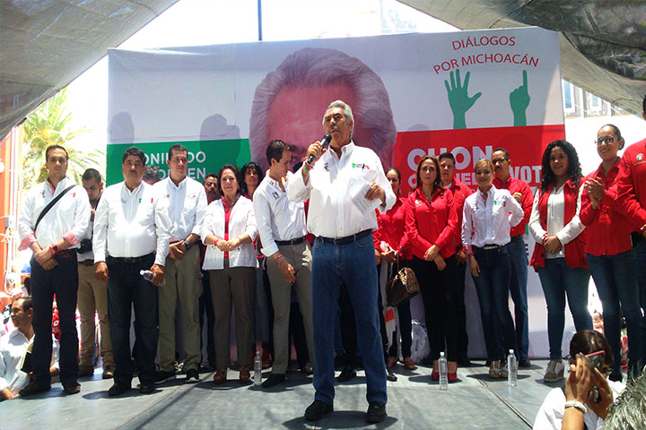 El candidato a la presidencia municipal de Morelia, por el Partido Revolucionario Institucional (P...
