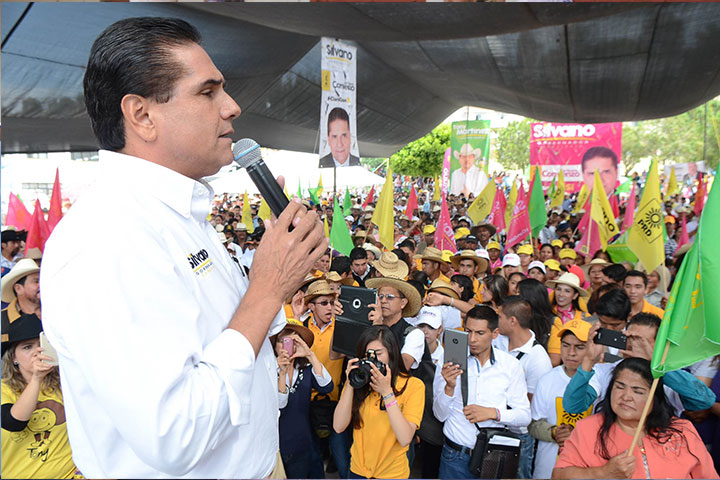 El candidato al gobierno de Michoacán por el PRD, PT, Encuentro Social y Nueva Alianza, Silvano Aur...