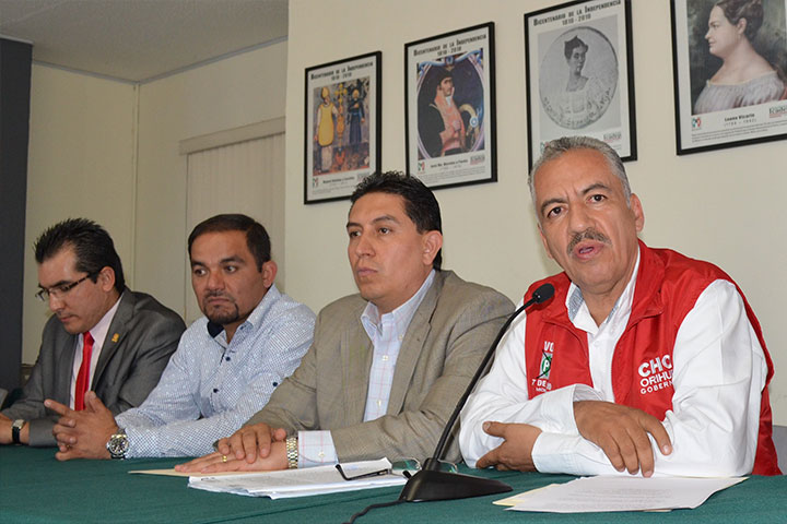 El dirigente estatal del PRD, Carlos Torres Piña, funcionarios de la delegación en Michoacán de l...