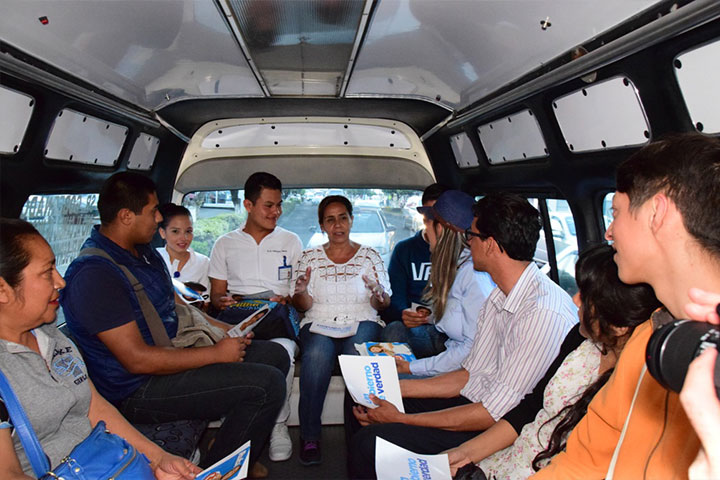 Luisa María de cerca con usuarios del transporte público