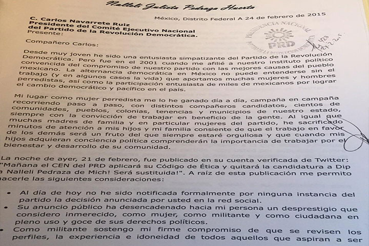 En carta dirigida a Carlos Navarrete, exige que el CEN del PRD haga públicos los documentos que le ...