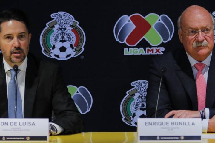 Yon de Luisa, Presidente de la Federación Mexicana del Fútbol, y Enrique Bonilla, Presidente Ejecutivo de la Liga MX, ofrecieron conferencia de prensa en la instalaciones de la FMF en Toluca, sobre el caso del Club Veracruz.