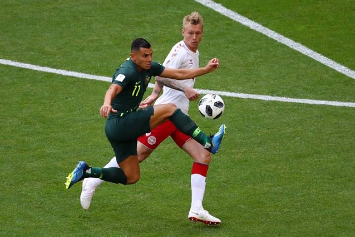 Las selecciones de Dinamarca y Australia han empatado a un gol el encuentro de la segunda jornada del Grupo C del Mundial de Rusia 2018que se ha disputado en el estadio Samara Arena. De esta forma, se enciende la definición de los clasificados, a falta del partido entre Perú y Francia.