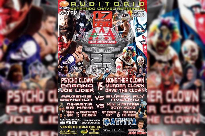 La lucha súper estelar estará encabezada por el recién ganador de la máscara del Dr. Wagner Jr. en Triplemanía XXV, Pyscho Clown, acompaña... Ver más...