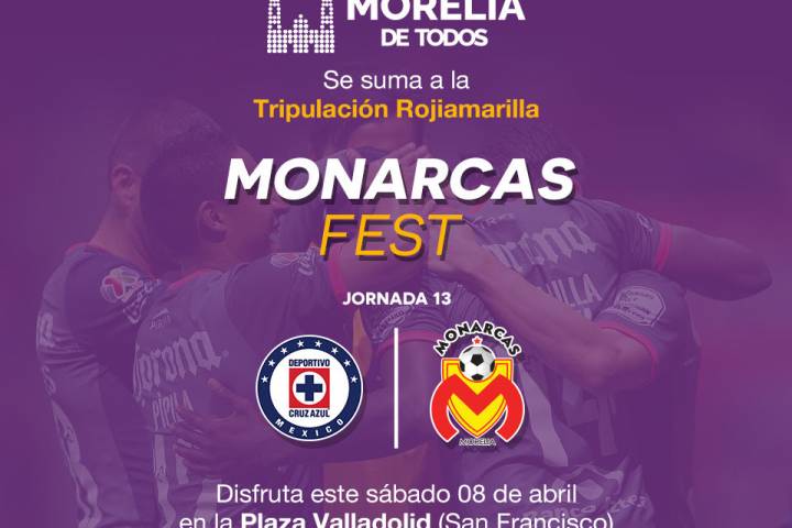 NOTICIAS 08/04/2017Este sábado, Monarcas Fest en la Plaza Valladolid En aras de continuar con la promoción de la convivencia familiar, la apropiación de los espacios públicos y el apoyo al conjunto michoacano en su lucha por la permanencia en el máximo circuito del futbol mexicano, el Ayuntamiento de Morelia invita a la ciudadanía al Monarcas Fest este sábado, en la Plaza Valladolid.
