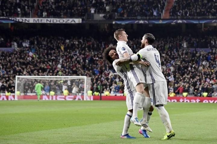 El choque se inició con sorpresa desde la comunicación de las alineaciones. La duda entre Lucas Vázquez o Isco en el conjunto blanco se resolvió inesperadamente a favor de James Rodríguez y con el colombiano sobre el tapete arrancó con brío el Madrid, disfrutando de la primera ocasión de gol Benzema en el primer minuto de juego.