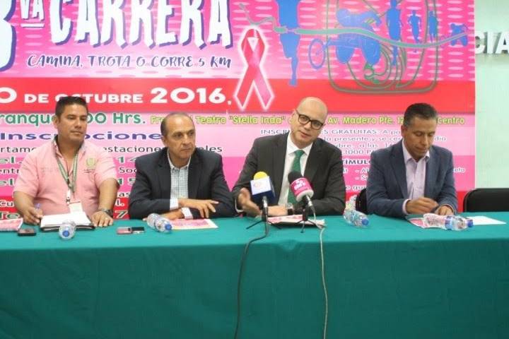 NOTICIAS 12/10/2016Presentan 8ª Carrera Atlética IMSS 2016Bajo el slogan "Mi Lucha es Rosa", y en el marco del mes de la lucha contra el cáncer de mama, se dio a conocer la convocatoria de la 8ª Carrera Atlética "Camina, Trota o Corre" 5k. a celebrarse el domingo 30 de octubre en punto de las 09:00 de la mañana, la cual pretende reunir a más de 3 mil personas.