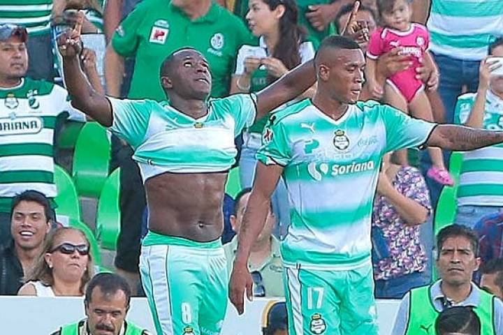 Jonathan Rodríguez marcó dos goles en tres minutos para darle a Santos su segunda victoria en la era de José Manuel de la Torre y en el Apertura 2016 de la Liga MX.
