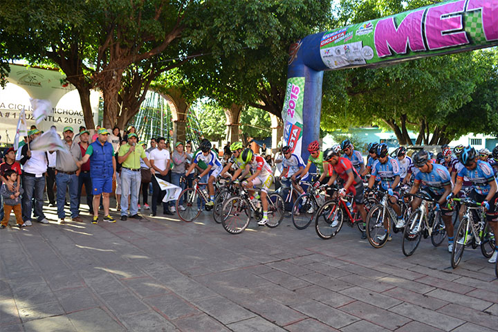 Con gran éxito y al contar con la participación de cerca de 100 ciclistas de los mejores 15 equipos del país, este miércoles se puso en marcha en este municipio la Vuelta Ciclista Michoacán 2015, que repartirá una bolsa de más de 150 mil pesos para los ganadores de las categorías Elite, Sub 23, Juvenil C, Máster A y Femenil, quienes recorrerán en cinco etapas por ocho municipios del estado, un aproximado de 500 kilómetros por la bel... Ver más...