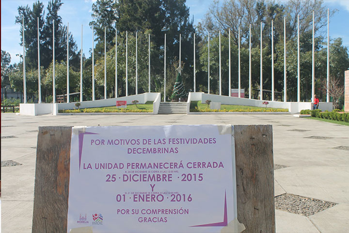 Las 11 unidades deportivas administradas por el Instituto Municipal de Cultura Física y Deporte (IMDE), suspenderán sus operaciones a partir del jueves 24 de diciembre en punto de las 12:00 horas hasta el sábado 26, en horario normal. En Año Nuevo, es decir, el 31 del mes en curso, cerrarán de igual forma las 12:00 horas y regresarán a sus funciones el sábado 2 de enero del año 2016.
