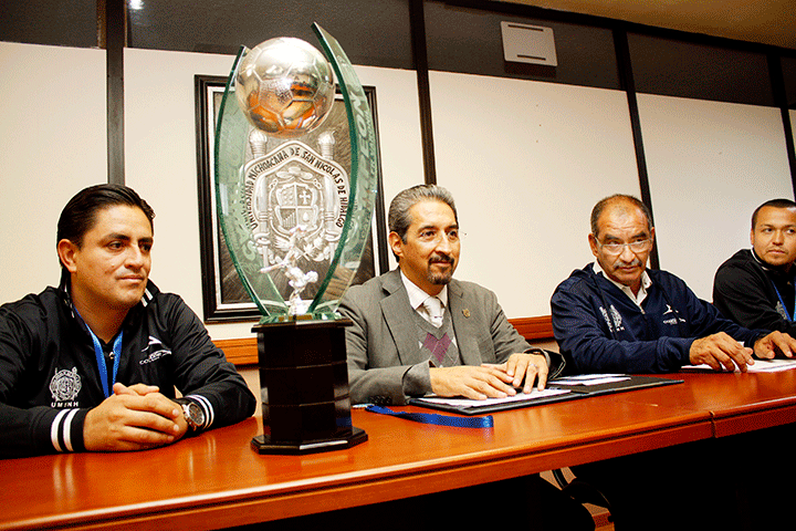 NOTICIAS 10/12/2015Felicita Rector a Nicolaitas Campeones Nacionales en Futbol RápidoEl rector de la Universidad Michoacana de San Nicolás de Hidalgo, Medardo Serna González, se reunió con los integrantes del equipo varonil de futbol rápido de la máxima casa de estudios, a quienes reconoció y felicitó por conquistar el Campeonato Nacional de la especialidad, mismo que se llevó a cabo del 26 al 28 de noviembre en el estado de Puebla.