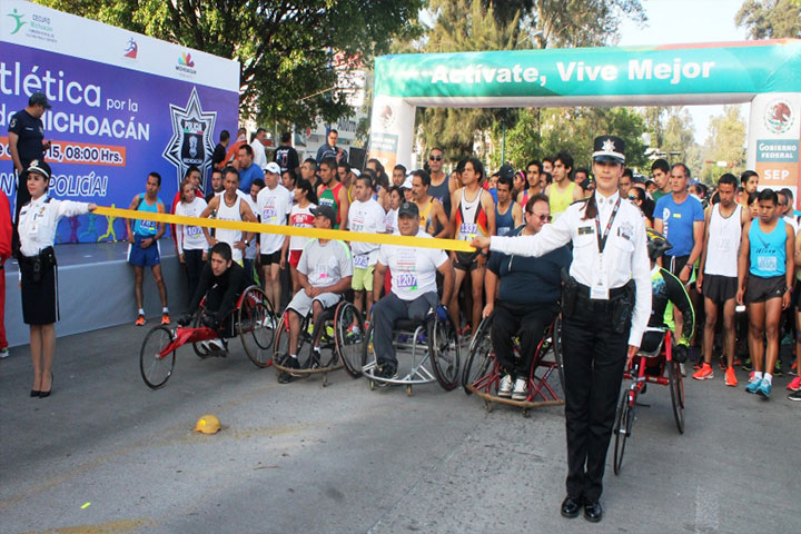 NOTICIAS 08/11/2015"Caos" en la Carrera Atlética por la Seguridad de MichoacánTodo un "caos" resultó la primera edición de la Carrera Atlética por la Seguridad de Michoacán 2.5k, 5k. y 10k. "Corre con tu Policía", la cual se llevó a cabo esta mañana en Morelia, con la participación de poco más de dos mil personas. Los ganadores absolutos fueron: José Carmen Ortiz y Misha Elena Ruiz en las ramas varonil y femenil, respectivamente.
