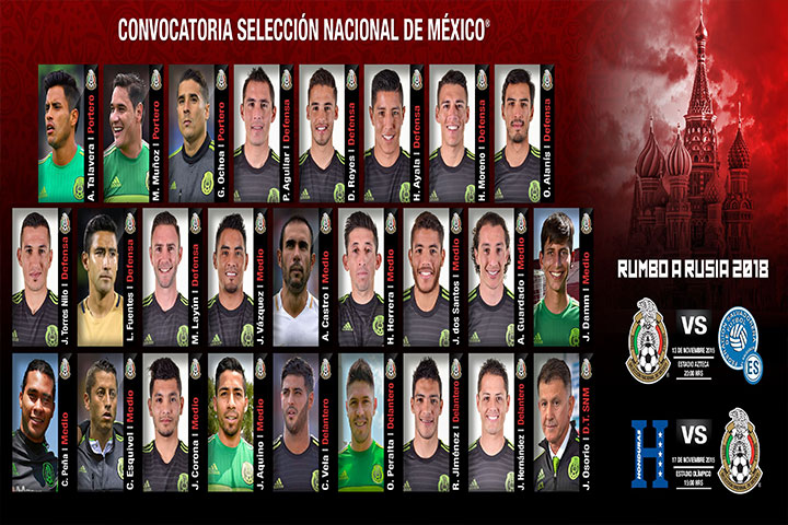 La Dirección de Selecciones Nacionales da a conocer la lista de los jugadores que han sido convocados por el Director Técnico, Juan Carlos Osorio, para integrar a la Selección Nacional de México que disputará dos partidos de Eliminatoria Mundialista en el presente mes.