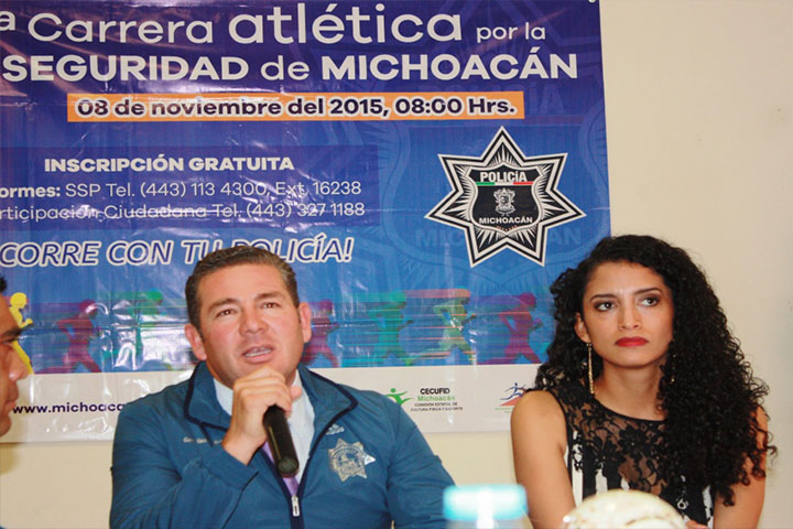 NOTICIAS 05/11/2015Presentan Carrera Atlética por la Seguridad de MichoacánBajo el slogan "Corre con tu Policía", el próximo domingo 8 de noviembre en punto de las 08:00 de la mañana, se llevará a cabo la primera edición de la Carrera Atlética por la Seguridad de Michoacán 2.5k, 5k y 10k. la cual tendrá como lugar de salida y meta en la esquina de las avenidas Ventura Puente y Camelinas.