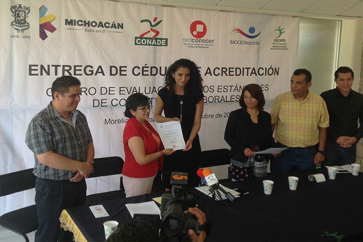 NOTICIAS 12/10/2015La Conade acredita a la Cecufid como entidad de certificación y evaluación deportiva La Comisión Estatal de Cultura Física y Deporte (Cecufid), recibió este lunes la cédula que acredita a Michoacán como Entidad de Certificación y Evaluación de Competencias, por parte de la Comisión Nacional de Cultura Física y Deporte (Conade) y del Consejo Nacional de Normalización y Certificación de Competencias Laborales (CONOCER).