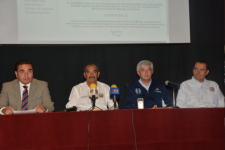 Como parte de las actividades especiales que organiza la Universidad Michoacana de San Nicolás de Hidalgo para conmemorar sus primeros cien años como la primera universidad autónoma de América Latina, este día abrió la inscripción para participar en la 4° Carrera Atlética Nicolaita 8 km. "Rumbo al Centenario de la UMSNH", que se realizará el próximo domingo 25 de octubre a las 8 de la mañana, así lo anunció en rueda de prensa el S... Ver más...