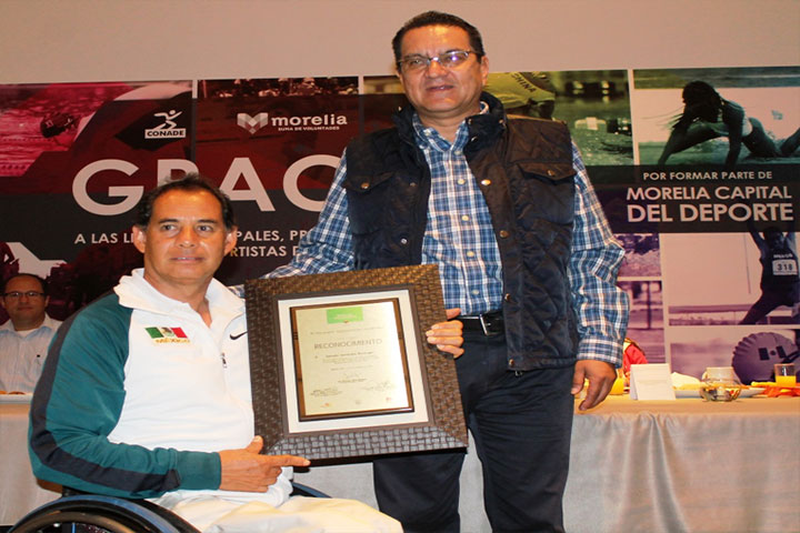 NOTICIAS 22/08/2015Reconocen a Salvador Hernández En el marco del desayuno organizado por el Ayuntamiento de Morelia como agradecimiento a Ligas Municipales, promotores deportivos, universidades, empresas y deportistas, Miguel Ángel García Meza, director general del Instituto Municipal de Cultura Física y Deporte (IMDE), otorgó un reconocimiento al atleta michoacano Salvador Hernández, doble medallista en los pasados Juegos Parapanamericanos de Toronto 2015.
