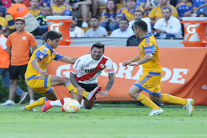 Tigres y River Plate empataron sin goles en la Ida de la Gran Final de la Copa Libertadores 2015, el juego se desarrolló en el Estadio Universitario.
