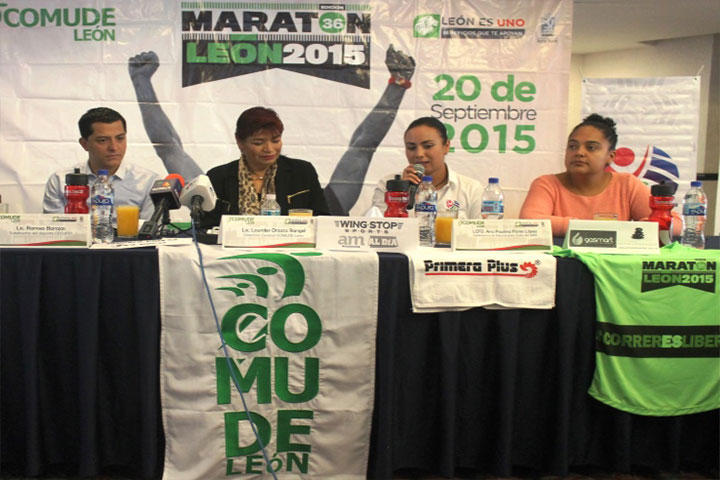 NOTICIAS 21/07/2015Presentan 36ª Maratón León 2015Con una bolsa superior a los 750 mil pesos en premios, el próximo domingo 20 de septiembre, se llevará a cabo la 36ª edición del Maratón de León 2015, con la participación de 3,500 atletas de diversos puntos de la República Mexicana, así como los ya tradicionales corredores kenianos. Evento organizado por la Comisión Municipal de Deporte y Cultura Física(Comude) de León, Guanajuato.