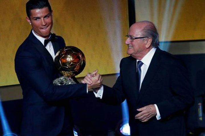 NOTICIAS 12/01/2015Cristiano Ronaldo gana el FIFA Balón de Oro 2014El atacante portugués Cristiano Ronaldo, del Real Madrid, obtuvo el FIFA Balón de Oro 2014 al imponerse en la terna que completaron el alemán Manuel Neuer (Bayern Múnich) y el argentino Lionel Messi (Barcelona).
