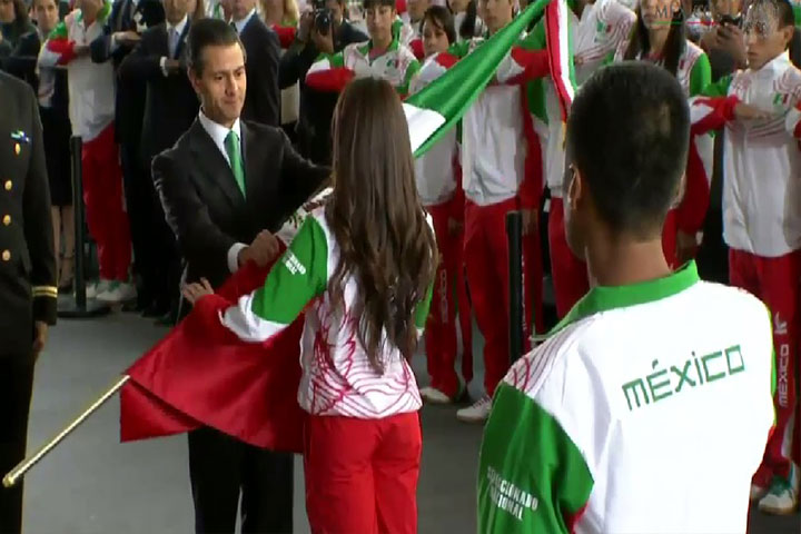 El Presidente Enrique Peña Nieto abanderó este viernes a la escolta que representa a los 713 deportistas que competirán en los Juegos Centroamericanos y del Caribe Veracruz 2014.