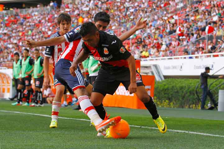 NOTICIAS 13/04/2014Monarcas casí fuera de la Liguilla del Clausura 2014Monarcas practicamente quedó eliminado de la Liguilla del futbol mexicano, al empatar a un gol frente a las Chivas Rayadas del Guadalajara, en partido correspondiente a la fecha 15 del Torneo Clausura 2014 de la Liga MX, celebrado en la cancha del Estadio Omnilife, ante cerca de 27 mil aficionados. Los goles fueron obra de Jorge Zarate (2) y Carlos Gerardo Rodríguez (53).