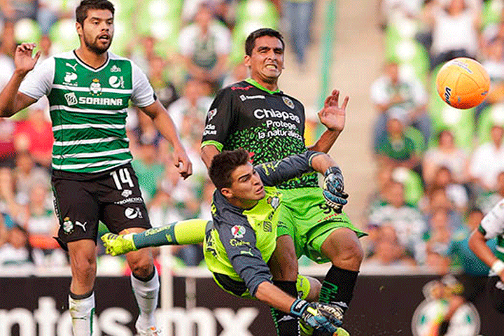 NOTICIAS 19/04/2014Zarpazo del Jaguar en la Comarca LaguneraChiapas venció tres goles por dos a Santos en partido correspondiente a la Jornada 16 del Clausura 2014 en la Liga MX, el cual se realizó en el Estadio Corona.