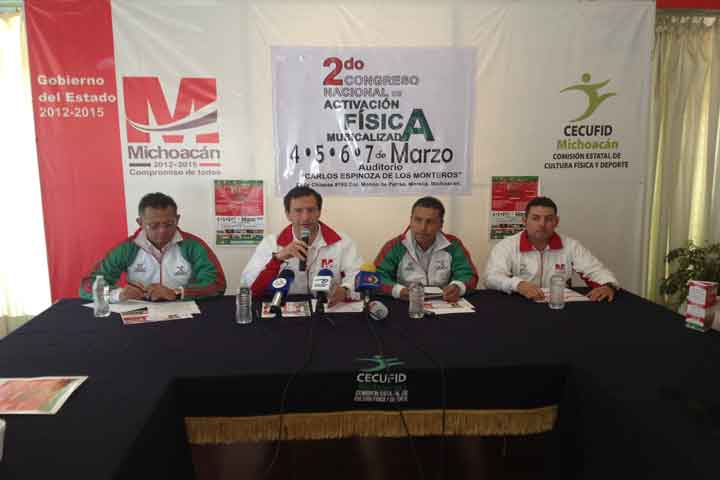 Fue presentado el 2° Congreso Nacional de Activación Física Musicalizada, a celebrarse del 4 al 7 de marzo en el Auditorio "Carlos Espinoza de los Monteros" de Comisión Estatal de Cultura Física y Deporte (Cecufid) de la capital michoacana, en la cual, se espera la asistencia de más de 800 personas, entre entrenadores, promotores deportivos municipales, monitores, estudiantes y profesores de educación física. Evento organizado por la Ce... Ver más...