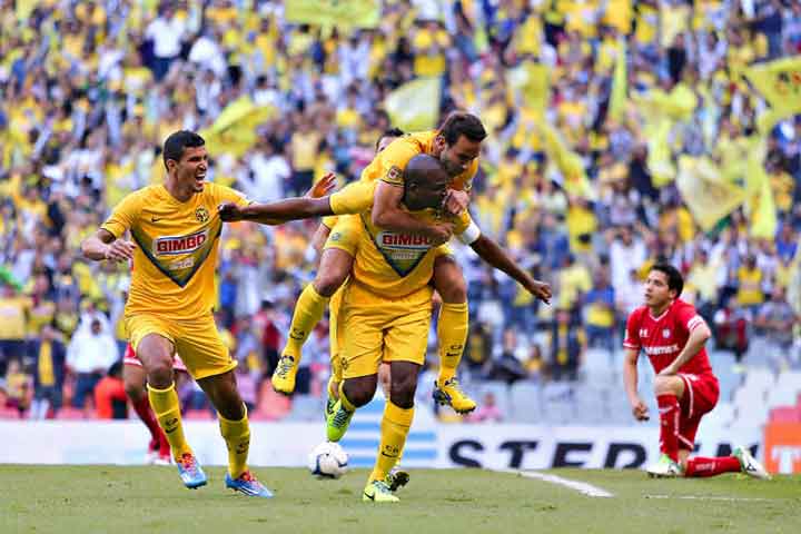 América es el primer finalista de la Liga MX Apertura 2013, eliminó con global de 3-2 al Toluca en la semifinal. Partido celebrado en la cancha del Estadio Azteca.