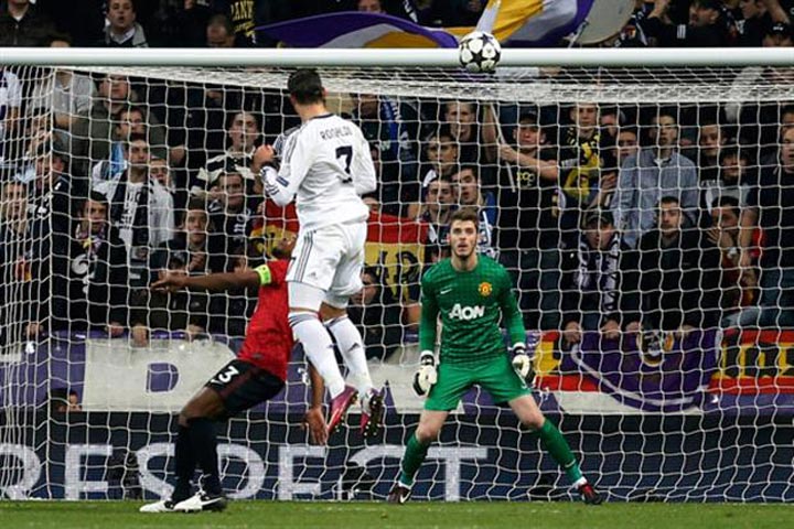 Real Madrid CF y Manchester United FC empataron 1-1 en un encuentro de ida de los octavos de final de la UEFA Champions League en el Santiago Bernabéu que no defraudó a las expectativas. Danny Welbeck adelantó al United con un gol de cabeza tras un saque de esquina, y Ronaldo empató poco después al batir a un David de Gea que salvó a los de Alex Ferguson en varias ocasiones. Otro escenario de auténtico lujo, el mítico Old Trafford, dict... Ver más...