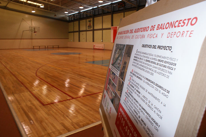 Con una inversión cercana a los 160 mil pesos, fue rehabilitado el Auditorio de Usos Múltiples Carlos Espinoza de los Monteros de la Comisión Estatal de Cultura Física y Deporte (Cecufid), obra que tuvo una duración de 45 días y que en parte realizaron los trabajadores sindicalizados adscritos a la casa del deporte estatal.
