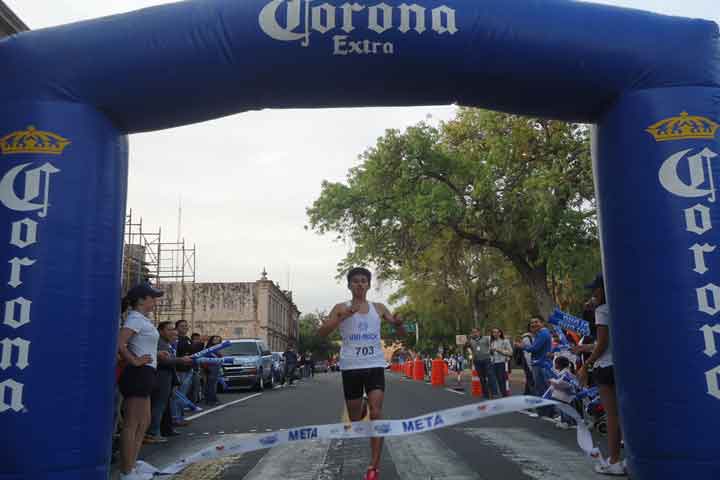 Jorge Montes, Enrique y Tomás Castillo, representantes de la Universidad Michoacana de San Nicolás de Hidalgo (UMSNH), hicieron el 1-2-3 de la Segunda Edición de la Carrera Atlética "Símbolos Patrios-Corona 5k", que se desarrolló la mañana de este domingo en la capital michoacana, con la presencia de 680 corredores. En la rama femenil Diana Vega se alzó con el triunfo.