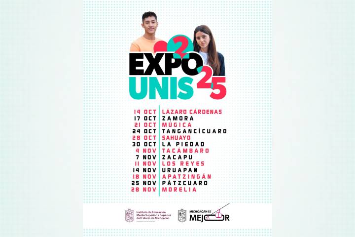 NOTICIAS 08/10/2025ExpoUnis 2025, el encuentro donde jóvenes elegirán su futuro profesional: IemsysemPor cuarto año consecutivo, el Instituto de Educación Media Superior y Superior del Estado de Michoacán (Iemsysem) llevará a cabo la ExpoUnis 2025, espacio que reúne a más de 80 instituciones públicas e incorporadas, con una oferta de más de 300 programas universitarios dirigidos a las y los jóvenes próximos a continuar su formación profesional.