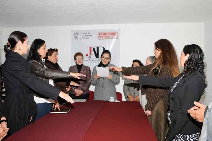 Patricia Mora de Vallejo, Presidenta del Sistema para el Desarrollo Integral de la Familia (DIF) Michoacán, tomó protesta a las vocales que integrarán la Junta de Asistencia Privada de Gobierno del Estado, cuya titular es Leticia Vázquez Álvarez.