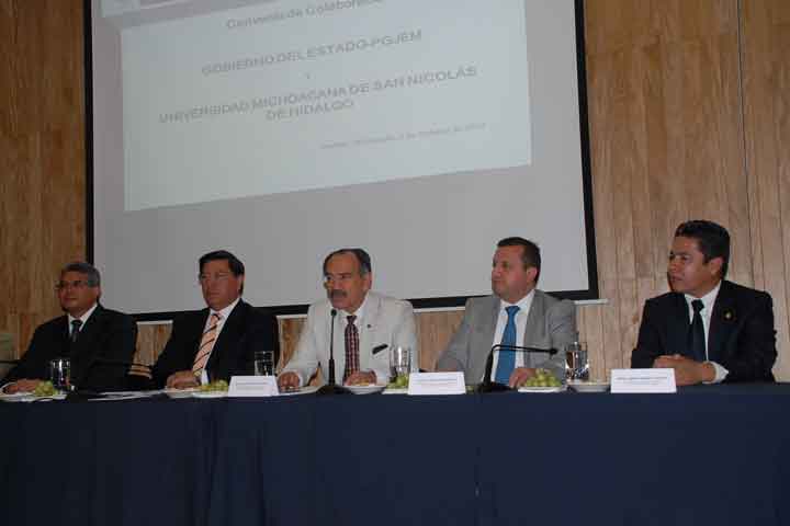 Para los grandes problemas del estado no hay como la participación decidida de las instituciones de educación superior, es por ello que la Universidad Michoacana de San Nicolás de Hidalgo (UMSNH) busca estrechar lazos de colaboración con el gobierno del estado de Michoacán comprometiéndose a diseñar la currícula de una Maestría en Procuración de Justicia, que actualizará a los servidores públicos que laboren en esta área, particula... Ver más...