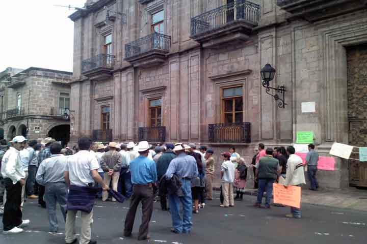 El Movimiento Antorchista en Michoacán decidió hacer una manifestación de protesta frente a Palacio de Gobierno en Morelia para demandar que se detenga el despojo que están llevando a cabo en estos momentos el presidente municipal de Tuzantla Julián RodrÃguez Rosales, el sÃndico Artemio Sesmas MiralrÃo y el secretario Atilano Sesmas, en contra del Colegio de Bachilleres de esa ciudad.