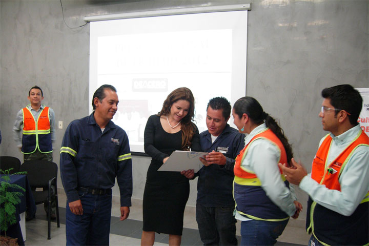 La delegada de la Secretaría del Trabajo y Previsión Social en Michoacán (STPS), Rocio Santos, entregó el tercer nivel de Reconocimiento denominado "Seguridad y Salud en el Trabajo" a la empresa DEACERO, S.A. DE C.V, lo cual indica que tanto directivos, mandos medios, así como la plantilla de trabajadores sindicalizados se encuentran comprometidos con la seguridad integral.