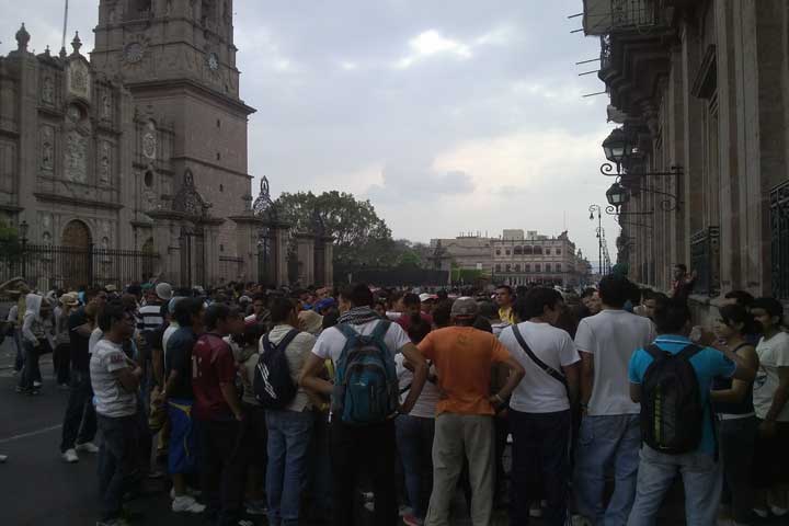 Por sexto día consecutivo los normalistas se manifestaron de nueva cuenta en la capital michoacana, pero esta ocasión en los centros comerciales, en donde por varias horas crearon caos vial y bloquearon las avenidas de la zona como medida de presión para exigir al gobierno mil 250 plazas automáticas.
