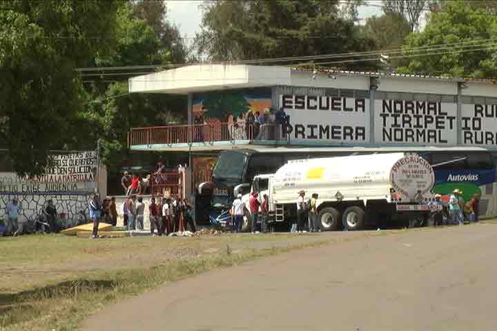 En el marco de estas acciones de los normalistas, la autoridad continuó con su implementación de operativos de seguridad en torno a sus movilizaciones. En la Escuela Normal Rural de Tiripetío, hasta este momento los normalistas tienen 8 autobuses retenidos y 6 vehículos más de transporte de diversos giros, así como algunos tanques de gas y a decir del subsecretario de gobierno, Fernando Cano hay 16 denuncias de particulares por la retenci... Ver más...