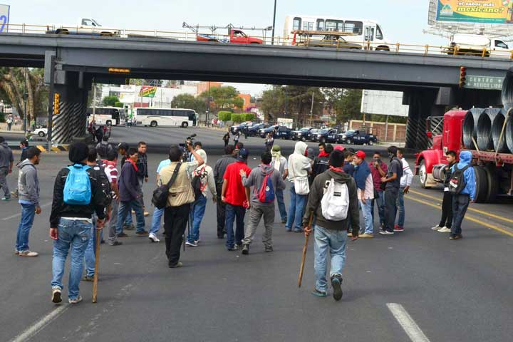 Ante la amenaza de ser desalojados, el grupo de normalistas que se mantenía bloqueando la salida Salamanca desistió de la toma de la vialidad a las 12:50 horas y se retiraron del lugar.