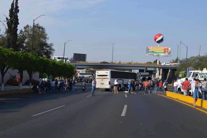 Los normalistas que bloquearon la Salida Salamanca con cuatro autobuses la mañana de este miércoles, recibieron con palos y piedras a elementos de seguridad que arribaron al lugar.
